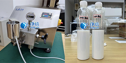 應(yīng)天津大學(xué)浙江紹興研究院客戶需求,對樣品油水混合乳液開展實驗操作。此次實驗是在上海松江工廠科研室開展進(jìn)行的,選用了凈信高壓納米均質(zhì)機(jī)JXNANO-15來對樣品油水混合乳液進(jìn)行實驗操作。