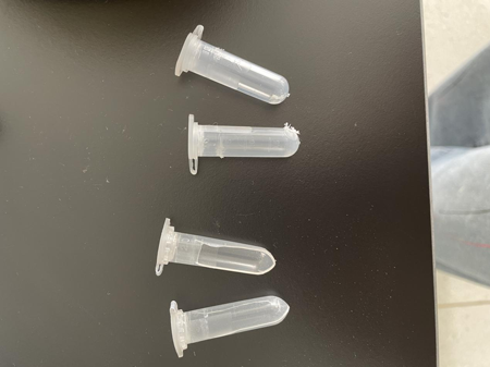 實(shí)驗(yàn)開始客戶使用自配的離心管進(jìn)行研磨,兩個(gè)樣品,另外添加兩個(gè)凈信生產(chǎn)的加厚研磨管進(jìn)行四角配平,時(shí)間30s,功率調(diào)到4檔??蛻舻碾x心管很薄,立馬被擊碎,凈信加厚研磨管沒有破裂但也出現(xiàn)了較嚴(yán)重磨損。