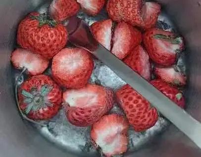 3、將液氮凍好的草莓放入勻漿罐中,將蓋子壓上。