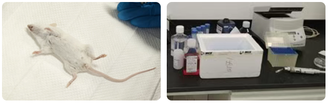 3、小鼠斷頸處死后,取出肝臟部,放入有培養(yǎng)基的培養(yǎng)皿中,放在冰上。