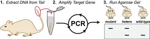 在以小鼠為模式生物進(jìn)行科學(xué)研究的實(shí)驗(yàn)室中,日常和基本的一個實(shí)驗(yàn)就是提取它們的遺傳物質(zhì)DNA(脫氧核糖核酸)進(jìn)行基因型鑒定,檢測這些小動物的基因組中是否含有特定的DNA。為了能夠從小鼠身上提取足夠的DNA,要從它們身上取下足量的細(xì)胞用于實(shí)驗(yàn)。為了盡可能減少對動物的傷害和方便試驗(yàn)人員的操作,我們只剪下一小段鼠尾作為實(shí)驗(yàn)樣品.
